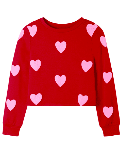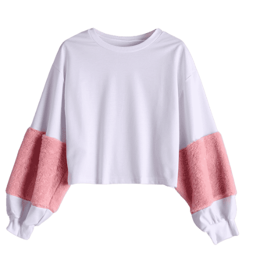 - Contrast Crop Sweatshirt / 2. Puff Sleeve Faux Fur Embellished Sweatshirt/ 3. Crew Neck Striped Pattern Sweatshirt/ 4. Hearts Pattern Valentine Sweatshirt /