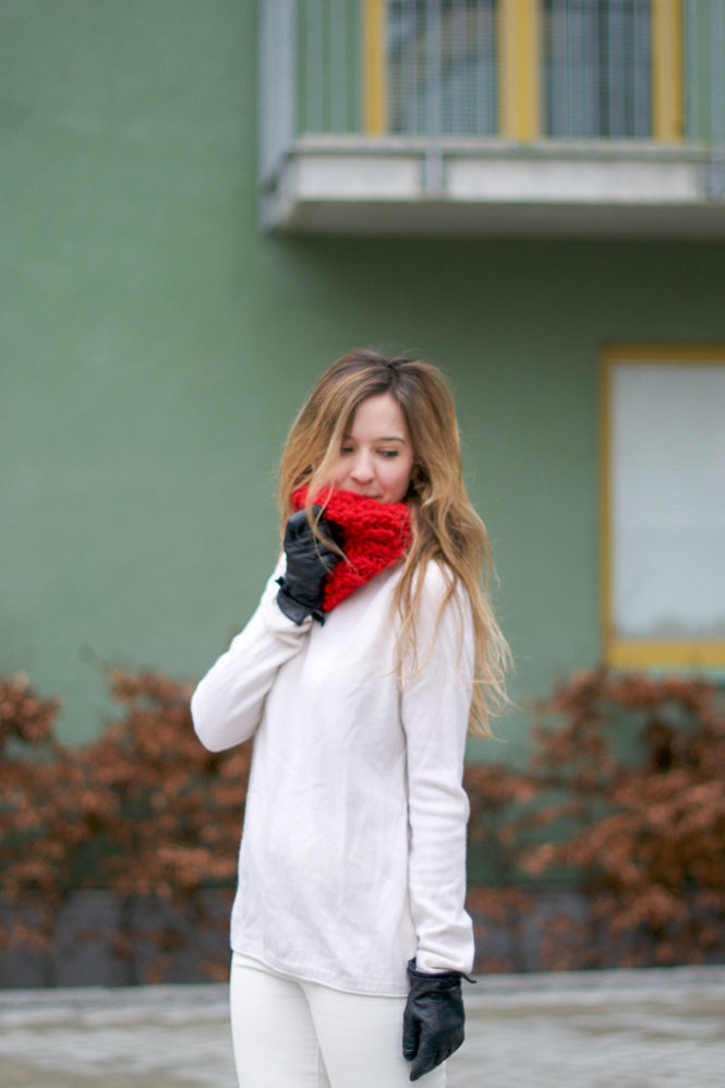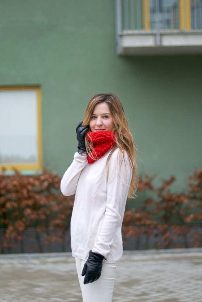 Je ne me suis jamais risquée au tricot, mais c’est vraiment sympa ce que tu fais 🙂 Et cette petite touche de couleur sur un total look blanc, j’adore ! Toujours aussi belle <3